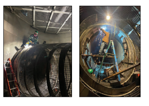 Leveraging its expertise in ceramic tape welding, Oceanwide developed a specialized procedure. A cofferdam is installed over the affected area, and a custom metal track is used to hold the ceramic tape in position. This allows the insert to be fitted and welded with the same precision and quality as a repair performed in dry dock.